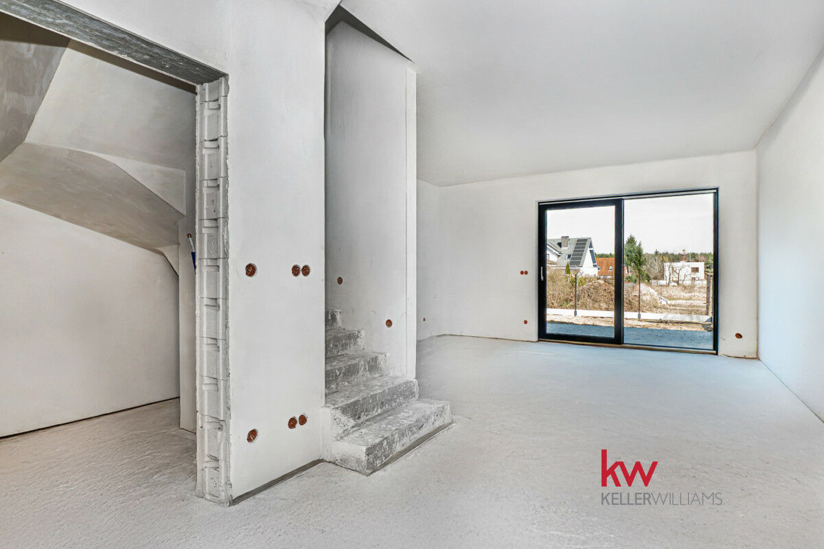 Dom został wykończony z użyciem najwyższej jakości materiałów, w standardzie deweloperskim, co daje możliwość dostosowania przestrzeni do własnych potrzeb i gustu.